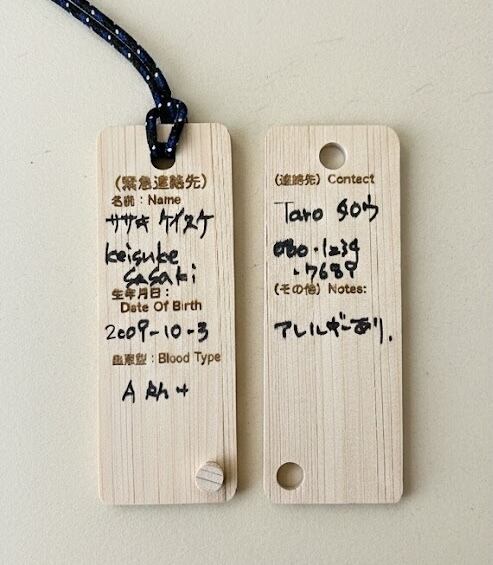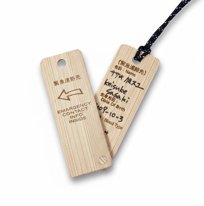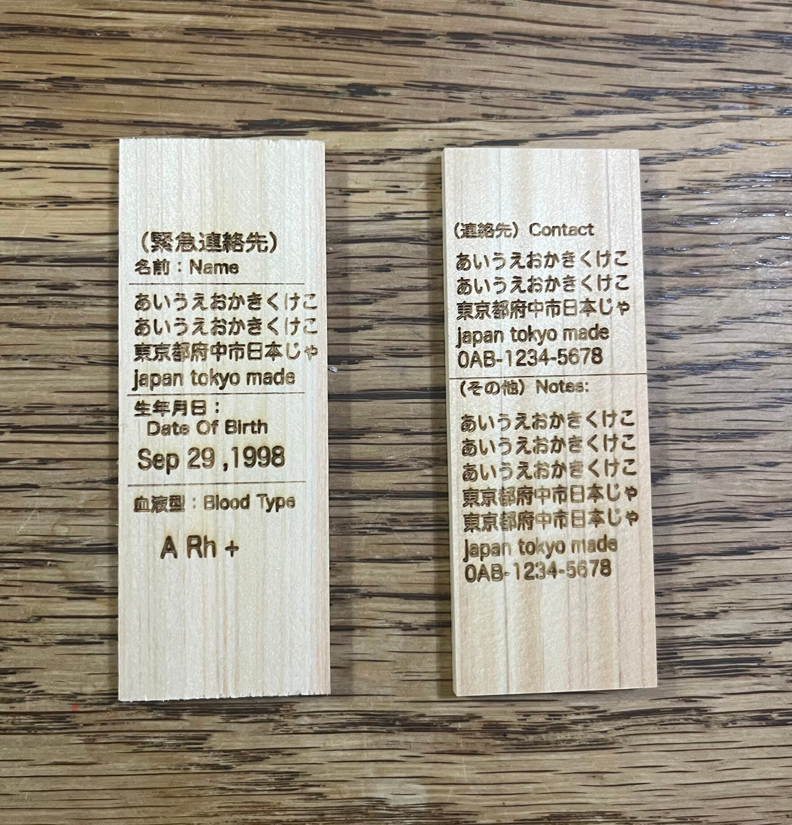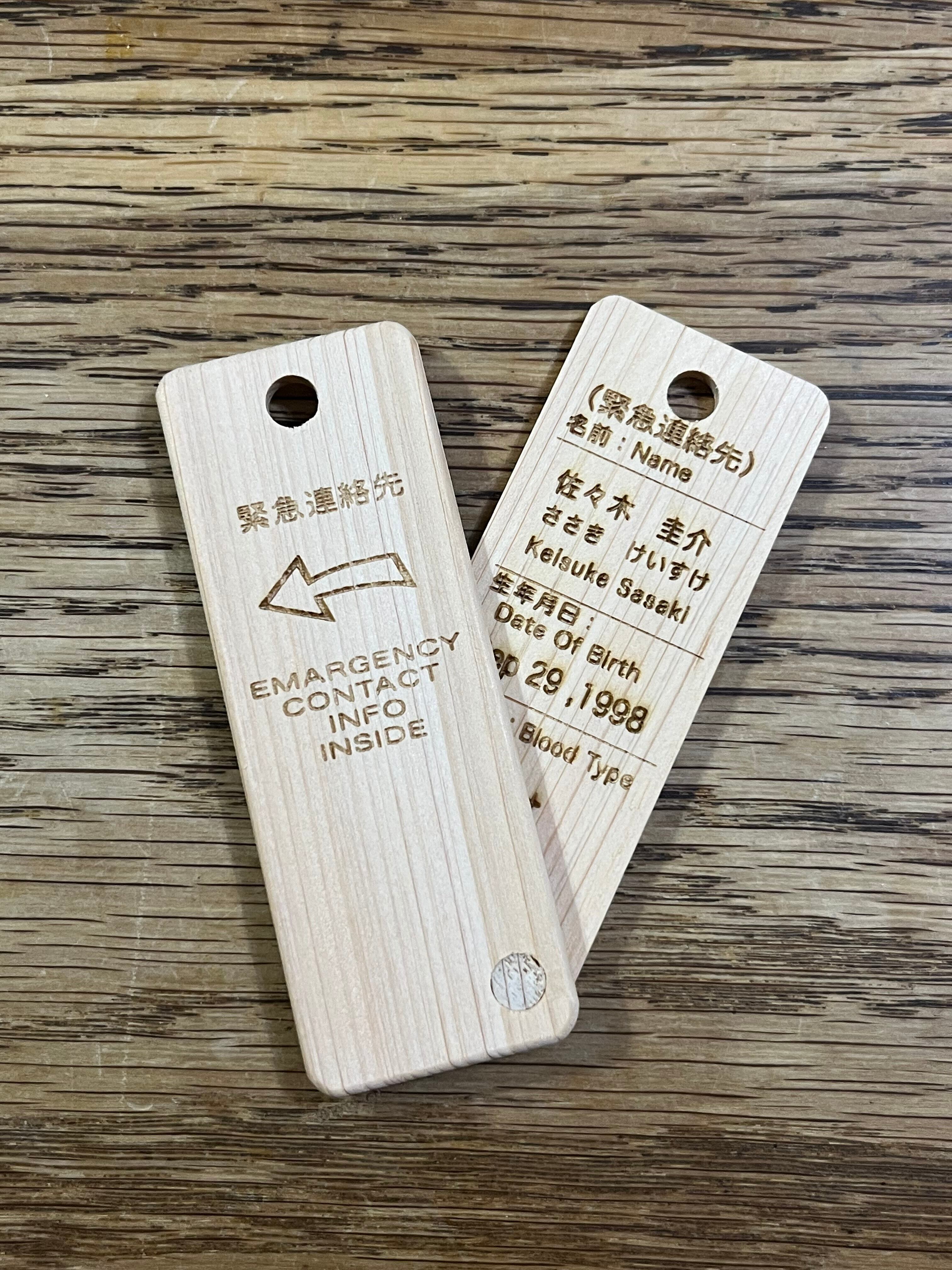 【新製品!】ひのきの木札(緊急連絡先タグ) (今だけ、送料無料)
